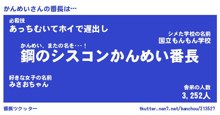 | ポケモン風あだ名 | 『カンチュウ』『カンメダネ』 |