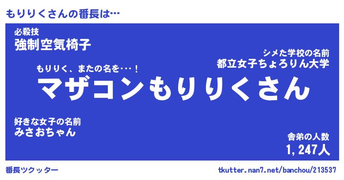 | 肩書あだ名 | 『もりりく御曹司』『もりりく国家主席』 |