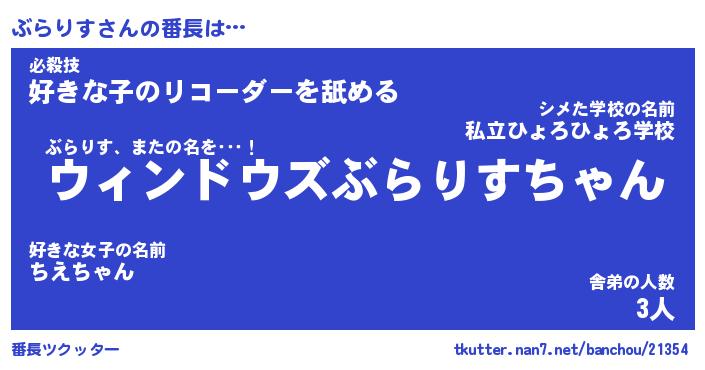 | 伝説のあだ名 | 『伝説のスナイパーぶらりす』 |