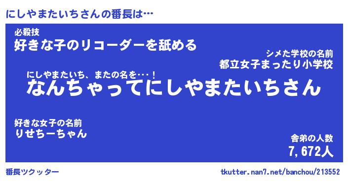 | ポケモン風あだ名 | 『ニシチュウ』『ニシヤダネ』 |