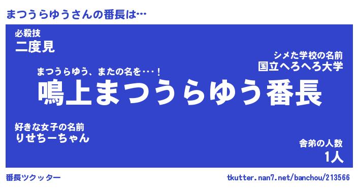 | 肩書あだ名 | 『まつうらゆう御曹司』 |