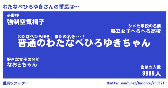 | 肩書あだ名 | 『わたなべひろゆき店長』 |