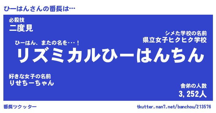 | 意味不明あだ名 | 『ペロリンひーはん』『永久保存ひーはん』 |
