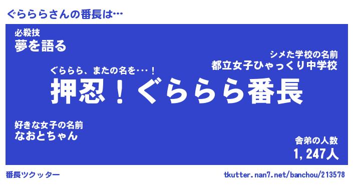 | 意味不明あだ名 | 『ペロリンぐららら』『永久保存ぐららら』 |