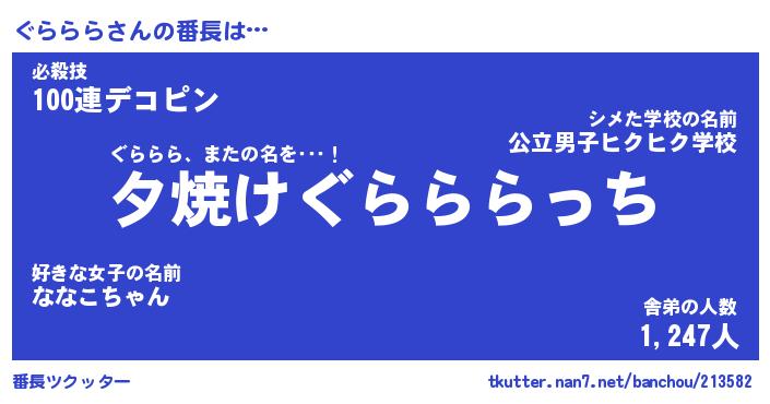 | 意味不明あだ名 | 『ペロリンぐららら』『永久保存ぐららら』 |
