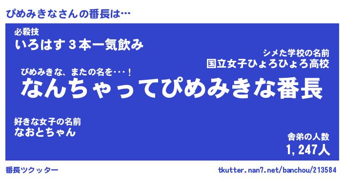 | 伝説のあだ名 | 『伝説のスナイパーぴめみきな』 |