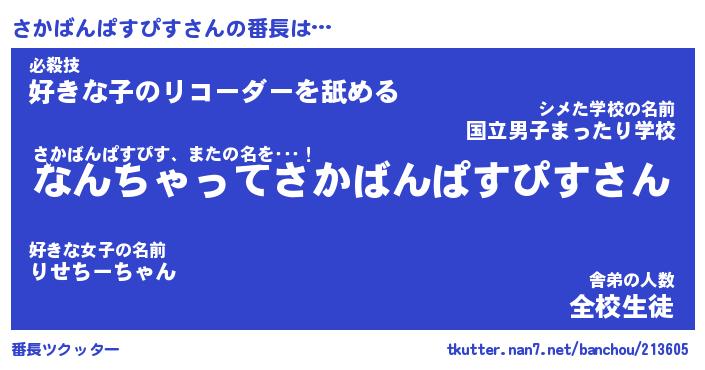 | 肩書あだ名 | 『さかばんぱすぴす社長』 |