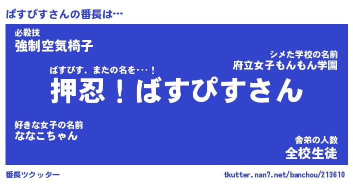 | 肩書あだ名 | 『ばすぴす店長』『ばすぴす大統領』 |