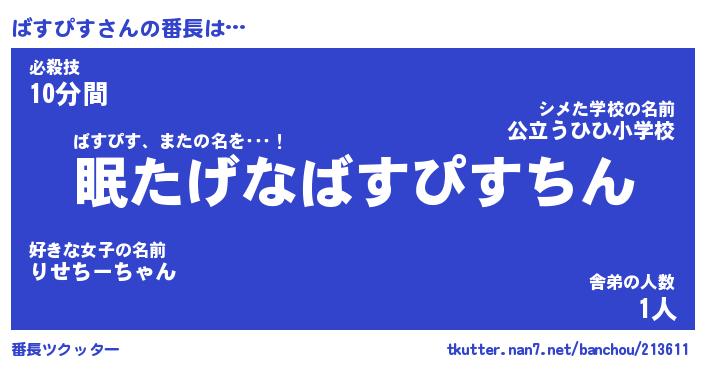 | 意味不明あだ名 | 『ペロリンばすぴす』『永久保存ばすぴす』 |