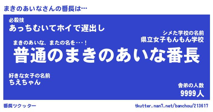 | 恥ずかしいあだ名 | 『プリティーまきのあいな』『まきっちょ』 |