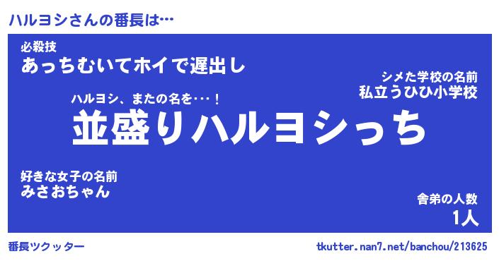 | 意味不明あだ名 | 『ペロリンハルヨシ』『永久保存ハルヨシ』 |