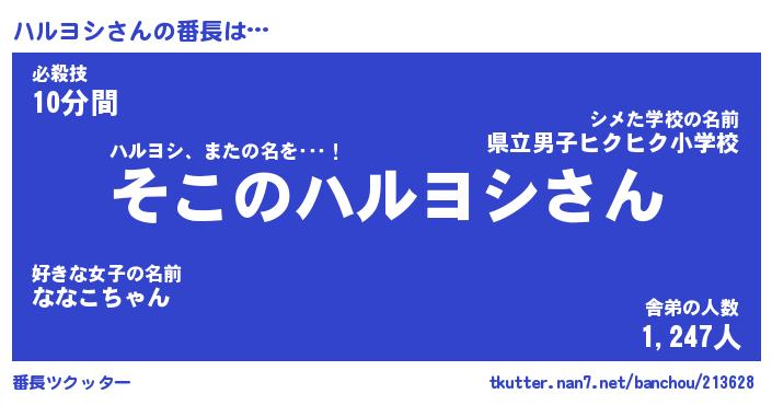 | 意味不明あだ名 | 『ペロリンハルヨシ』『永久保存ハルヨシ』 |