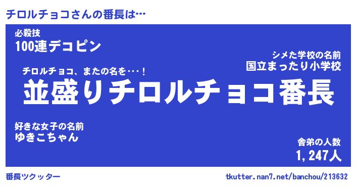 | ヘコむあだ名 | 『チロにー』『つくし』『チロっちょ』 |