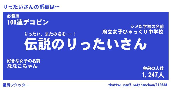 | 意味不明あだ名 | 『ペロリンりったい』『永久保存りったい』 |