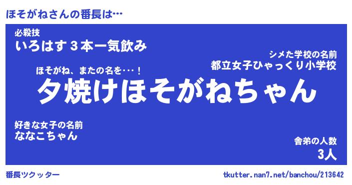 | 2回繰り返すあだ名 | 『ほそほそ』『ほほそそ』『おやおや』 |