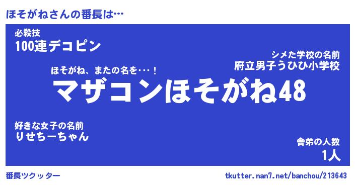 | 伝説のあだ名 | 『封印されしスナイパーほそがね』 |