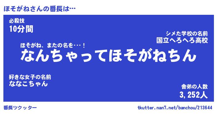 | 意味不明あだ名 | 『ペロリンほそがね』『永久保存ほそがね』 |
