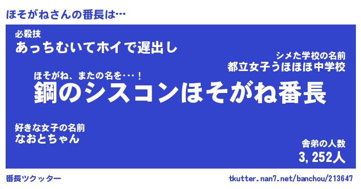 | ポケモン風あだ名 | 『ホソチュウ』『ホソガダネ』 |