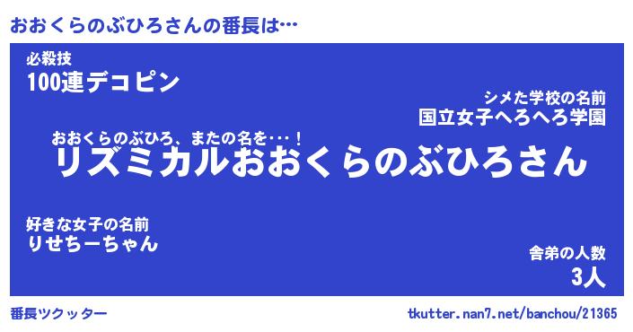 | 男性向けラノベタイトル風あだ名 | 『おおくらのぶひろの憂鬱』 |