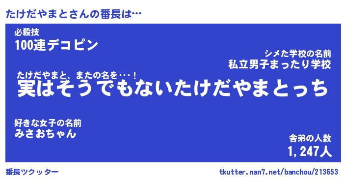 | 2回繰り返すあだ名 | 『たけたけ』『たたけけ』『ねちねち』 |