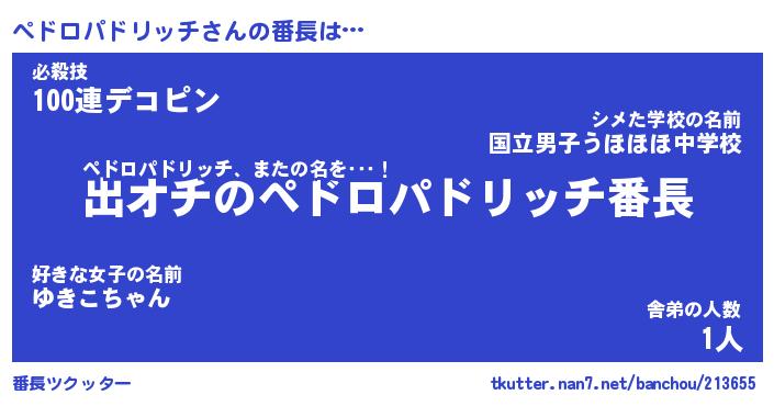 | ポケモン風あだ名 | 『ペドチュウ』『ペドロダネ』 |