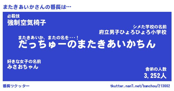 | ヒーロー風カッコイイあだ名 | 『スーパーマタキアイカ』『炎刃騎士マタ』 |