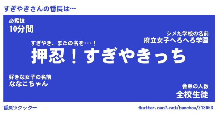 | 伝説のあだ名 | 『封印されしスナイパーすぎやき』 |