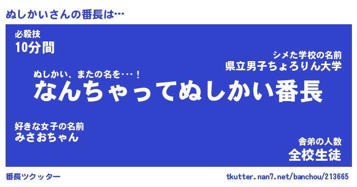 | 意味不明あだ名 | 『ペロリンぬしかい』『永久保存ぬしかい』 |
