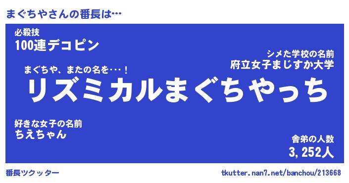 | 肩書あだ名 | 『まぐちや社長』『まぐちや総理大臣』 |