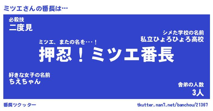 | 意味不明あだ名 | 『ペロリンミツエ』『ミツエフォーエバー』 |