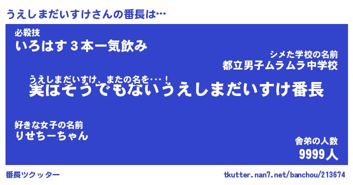 | 肩書あだ名 | 『うえしまだいすけ店長』 |