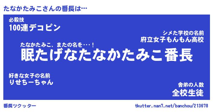 | ヘコむあだ名 | 『たなもー』『つくし』『たな太郎』 |