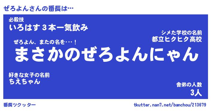 | 意味不明あだ名 | 『ペロリンぜろよん』『永久保存ぜろよん』 |