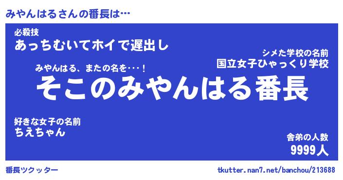 | 肩書あだ名 | 『みやんはる御曹司』『みやんはる先生』 |
