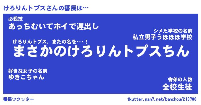 | 2回繰り返すあだ名 | 『けろけろ』『けけろろ』『うずうず』 |