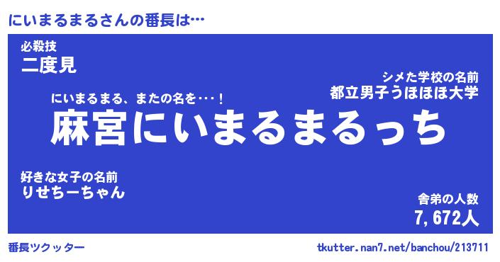 | ヒーロー風カッコイイあだ名 | 『スーパーニイマルマル』『炎刃騎士ニイ』 |