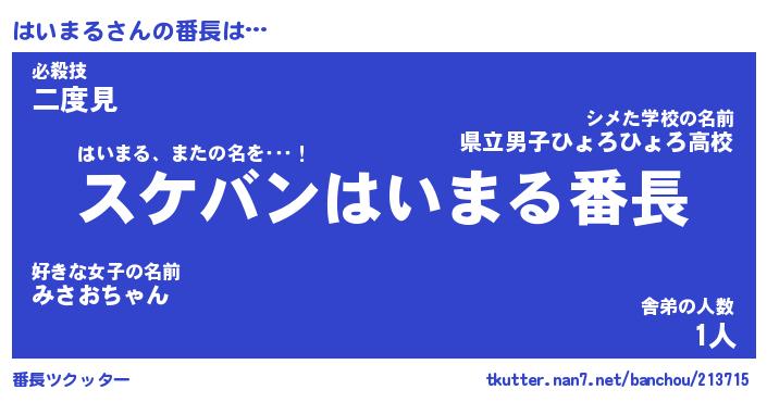 | 意味不明あだ名 | 『ペロリンはいまる』『永久保存はいまる』 |