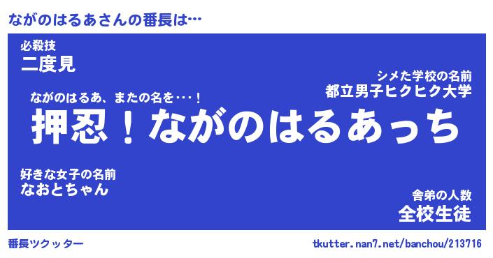 | 伝説のあだ名 | 『封印されしスナイパーながのはるあ』 |