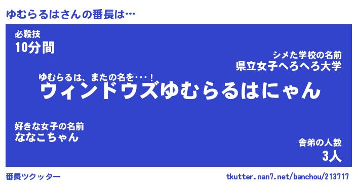 | 肩書あだ名 | 『ゆむらるは社長令嬢』『ゆむらるは班長』 |