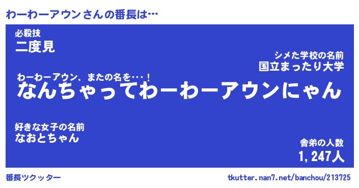 | 2回繰り返すあだ名 | 『わーわー』『わわーー』『ぬれぬれ』 |
