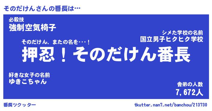 | ヒーロー風カッコイイあだ名 | 『スーパーソノダケン』『暗黒騎士ソノ』 |
