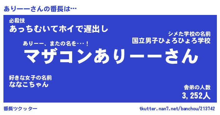 | 肩書あだ名 | 『ありーー社長』『ありーー国家主席』 |