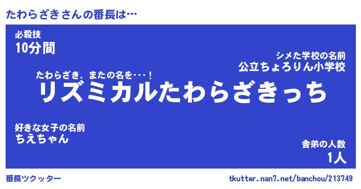 | ファンタジー風あだ名 | 『タワフェル』『エターナルタワラザキー』 |
