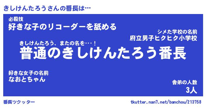 | 男性向けラノベタイトル風あだ名 | 『キシケンタロウアートオンライン』 |
