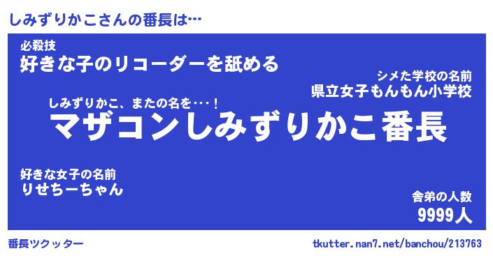 | 伝説のあだ名 | 『封印されしスナイパーしみずりかこ』 |
