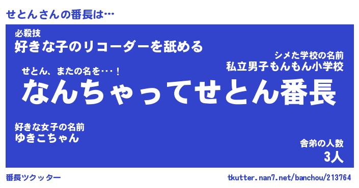 | 意味不明あだ名 | 『ペロリンせとん』『せとんフォーエバー』 |