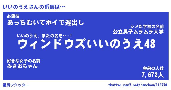 | 肩書あだ名 | 『いいのうえ社長』『いいのうえ総理大臣』 |