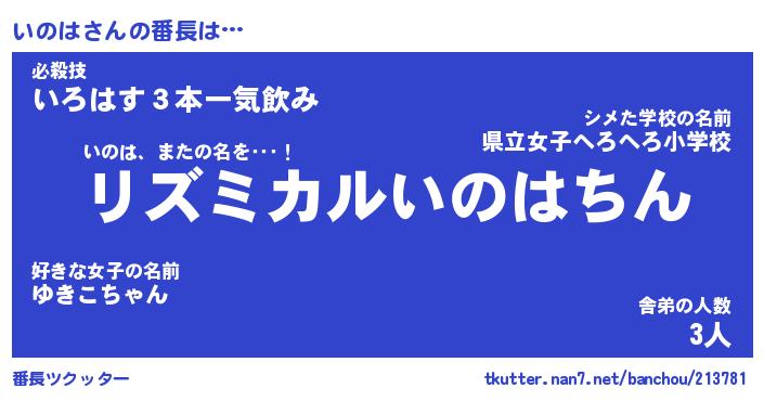| ヒーロー風カッコイイあだ名 | 『スーパーイノハ』『ウルトラいのはマン』 |