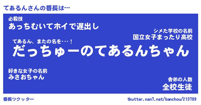 | 意味不明あだ名 | 『ペロリンてあるん』『永久保存てあるん』 |