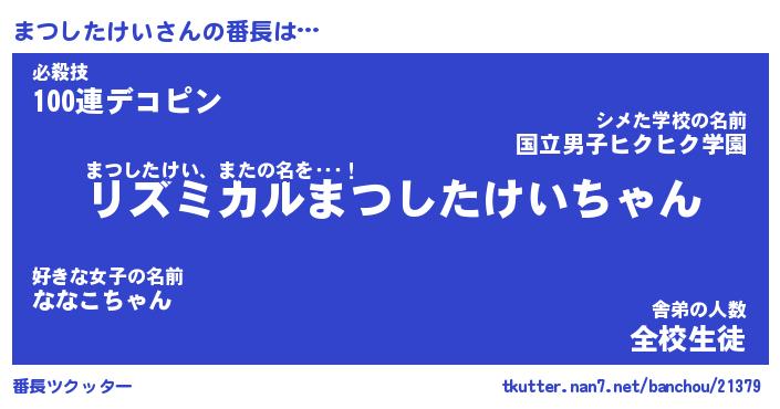 | 胡散臭い通販商品みたいなあだ名 | 『必ず成功するブレスレット…その名も「まつしたけい」』 |